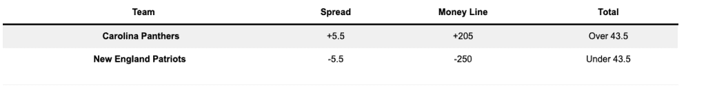 | Carolina Panthers (1-2) at New England Patriots (1-2) | |||